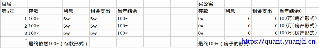 这种比较就不对等了,等于一方降低生活体验的,不在此分析范畴内。因为即使买房,亦可出租出去,然后转租小房子,一样可以得到一笔正向现金流。
